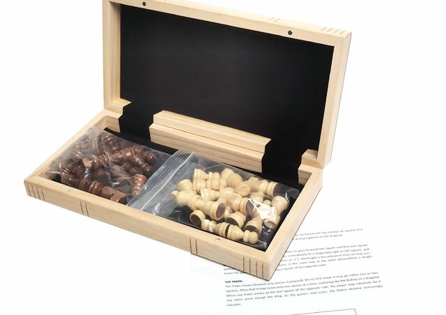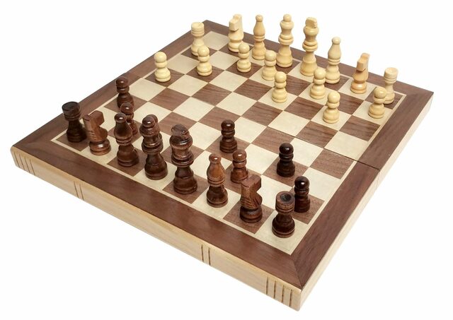 From novice to master, chess continues to challenge players of all ages. This chess set includes a folding wooden chess board and 32 chess pieces. The pieces all have felt on their bottoms.