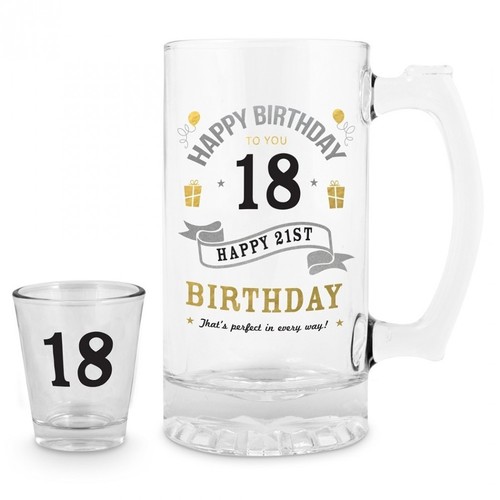 Stein Size: 150 mm high *Please note there is a mistake in the stein - our stock says Happy 18th, not 21 as shown*