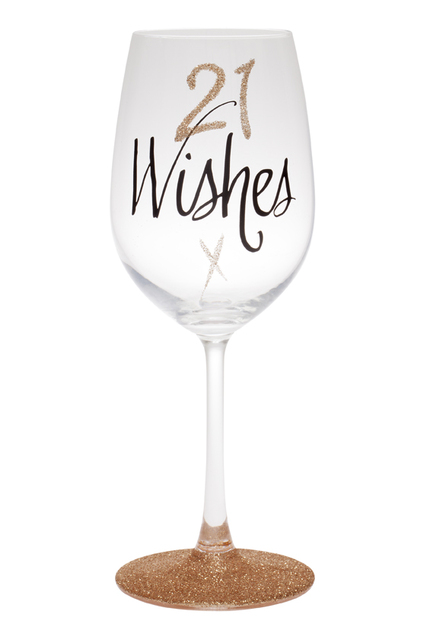 No 21st birthday celebration is complete without a fabulous wine glass - if it has glitter on it, all the better!