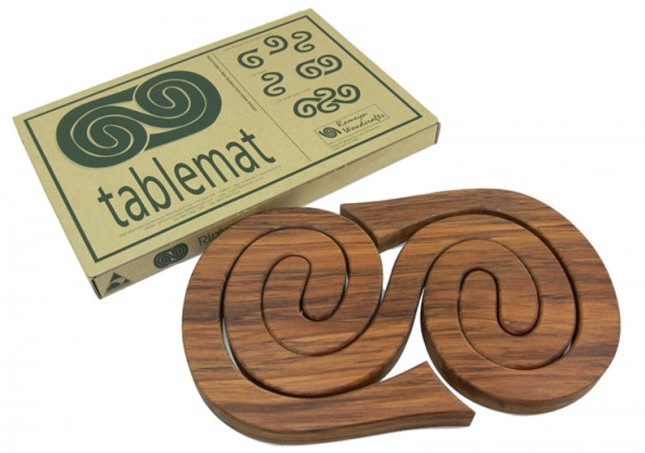 Made here in New Zealand from solid native Rimu timber, presented in the box as shown, showing the different ways to use this set.