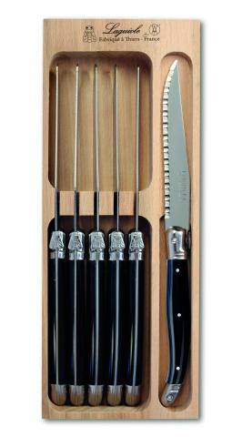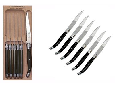Handcrafted in France, made with stainless serrated blades and resin handles, with the Laguiole trade mark bee on the handle.