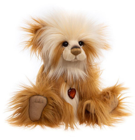 This charming plush panda is made from luxurious long-pile plush in a blend of white and golden brown and features intricate hand-embroidered details on its nose, mouth and toes. Complete with a bear-utiful heart-shaped pendant, this bear is a delightful keepsake that promises to bring smiles and warm memories.
