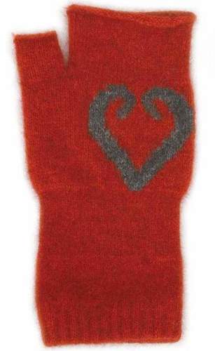 Our lovely Aroha fingerless mittens feature a split Putiki motive forming a dark grey heart on the back of the hand.