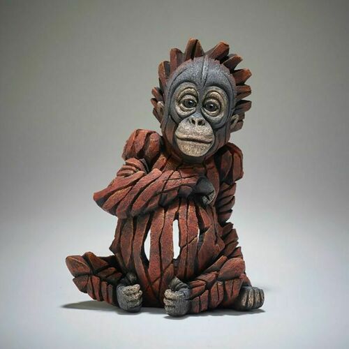 This baby orangutan has been brought to life by Matt Buckley in this stunning sculpted interpretation of this gentle creature. The baby orangutan has been sculpted in a sitting down pose with an arm resting on its belly. This endearing piece has been hand-painted with rich hues of orange-brown and features detailed carvings resembling an orangutan's hair.