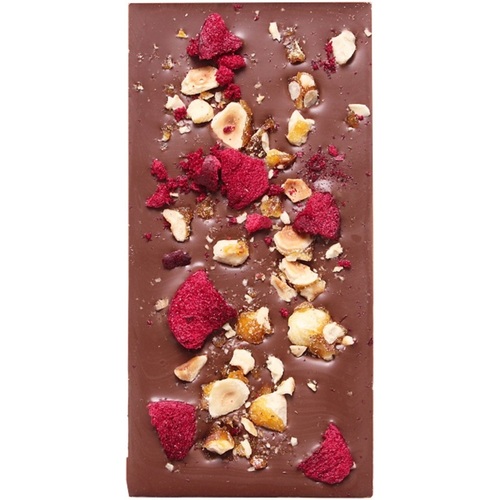 Made with single origin Vietnam milk chocolate, hand decorated with Freeze dried NZ Black Doris plums and delicious caramelised hazelnuts.