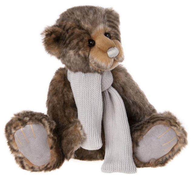 BFF is a 5 jointed bear. Its short and plush fur has a fading stripe which will be slightly different on every bear. BFF is kept toasty and warm by a lovely scarf.