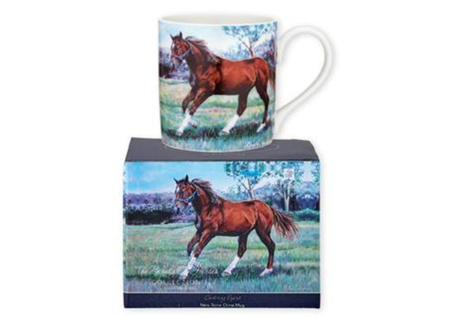 New bone china mug with a beautiful print of a stunning horse. The artwork is called, "Cantering Spirit" by artist, Kristin Hardiman.