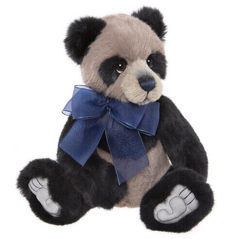 Snuggle up with Chess, our paw-some Plumo panda. This playful pal loves fun and games. Crafted from the softest black and beige plush with touches of alpaca, this cuddly panda boasts hand-embroidered detailing, deep endearing eyes, and a handsome blue organza bow.