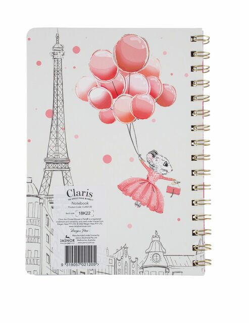 Spiral bound A5 size Claris Notebook with pink lined pages, this gorgeous notebook features Claris on the cover.