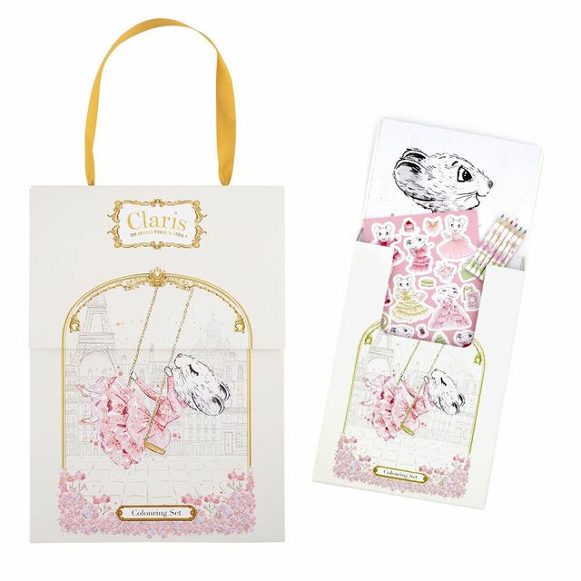Our Claris colouring set includes 6 x pencils, an A5 sticker sheet with 17 stickers and 20 loose colouring pages.