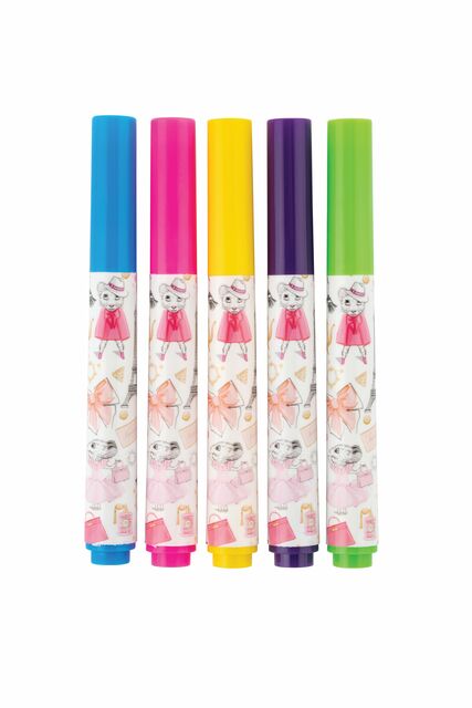 Claris fans can draw and colour their very own designer creations with our set of 5 washable coloured markers. Presented in a clear plastic sleeve with button closure and adorned with a stylish pink crystal beaded handle.