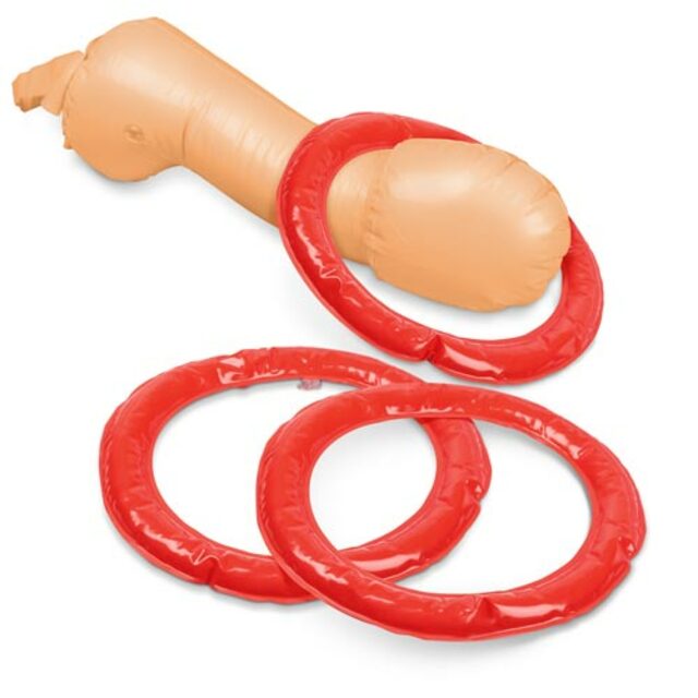 Includes a giant inflatable cock with harness to strap to the body and 3 inflatable rings.