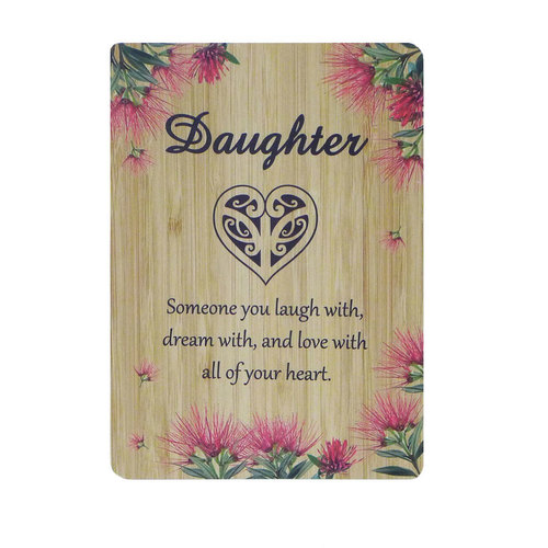 Made from eco-friendly bamboo, this plaque looks lovely with its pohutukawa embellishments, koru-filled heart and a heart warming phrase.