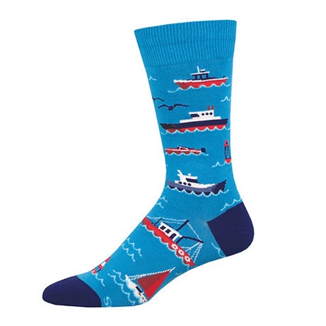 These fabulous blue socks are decorated with lots of different boats. Yachts, tugs, launches, big ships, little boats - they've got them all!