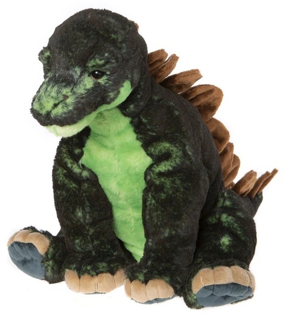 A good friend of Hugh Mongus, E Normous is a sleepy-faced stegosaurus dinosaur. He has short, soft green fur and plush spikes/plates running from the back of his head down to his tail.