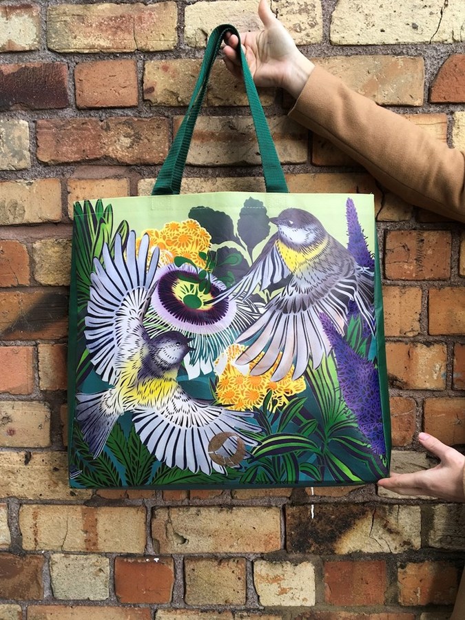 These cool reusable tote bags are made from a laminated non-woven material to maximise strength. It has a flat base, and long straps for carrying over your shoulder.