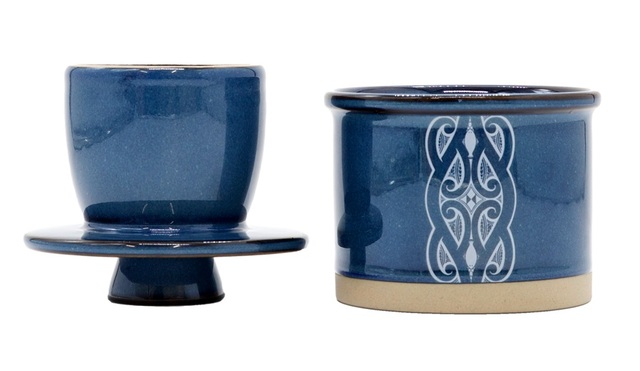 Presented in a beautiful blue and featuring artwork by New Zealand artist, Miriama Grace-Smith, this ceramic butter bell not only looks good but is fully functional as well.