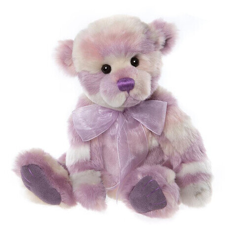 With her delightful patchwork of pastel pink, lilac, and white plush fur, she's ready to join your hug and offer cuddles galore. Adorned with a purple organza bow around her neck, Hollyhock is an absolute sweetheart.