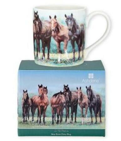 Beautiful boxed mug decorated with a print from Kristin Hardiman named "In The Pasture". Made from New Bone China.