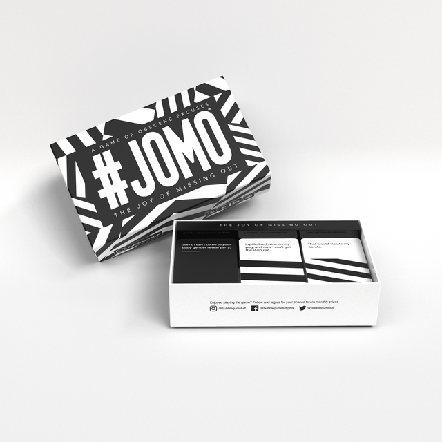 #JOMO sets you the task of excusing yourself from some of life's most tedious, boring or just plain dreadful events and activities in hilarious ways. You know, the baby gender reveals, books clubs and holidays to Cancun.