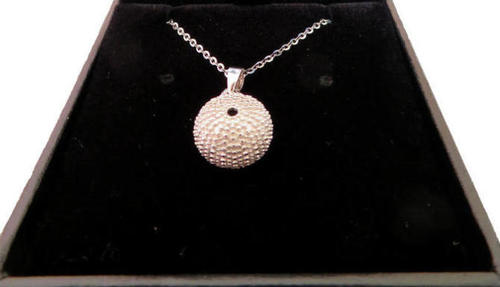 Delicate and beautiful, this sterling silver kina pendant on chain makes a beautiful gift. Pair it with its matching earrings, or wear by itself. This species of kina (sea urchin) is only found in New Zealand and has become synonymous with the ocean and kai moana. Pendant measures 10mm in diameter. Chain measures 420mm long. Comes boxed.
