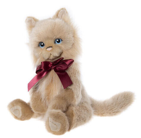 Purrrfect and pretty, Kingswood is a super-soft beige plush cat inviting endless snuggles! This friendly feline has bright blue eyes, a cute hand stitched pink nose and wears a red satin bow. Whether nestled on your lap or perched on a shelf, he is sure to become the centrepiece of your affection.