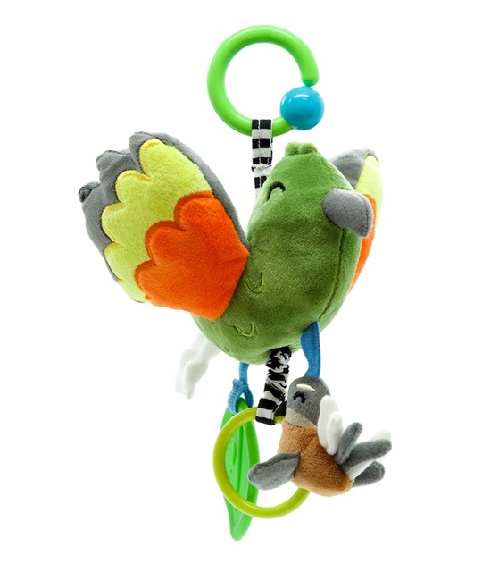 Kevin the Kea is now in take-along size. He comes with a handy clip, a leaf teether, and his little fantail friend.