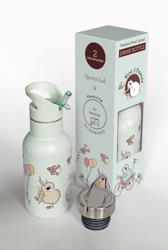 Kuwi and friends double walled stainless steel drink bottle featuring the always adorable, ever popular, Kuwi the kiwi and his equally cute friends.