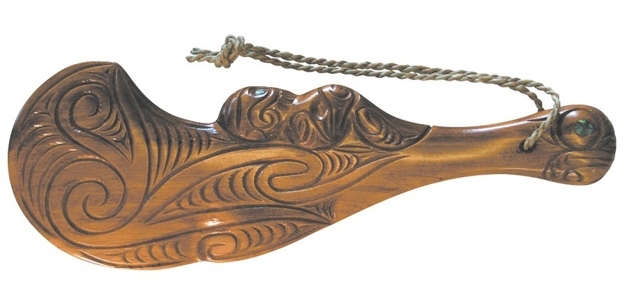 Proudly hand carved here in New Zealand using traditional techniques. Made from sustainable tulipwood and Paua Shell.
