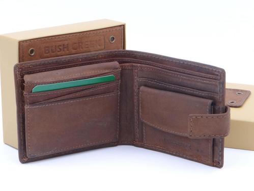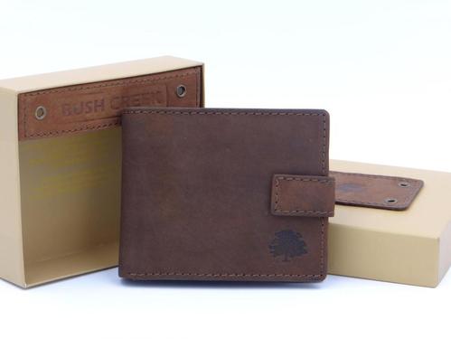 Gift Boxed Genuine Buck Leather Wallet with Tab Dome Closure