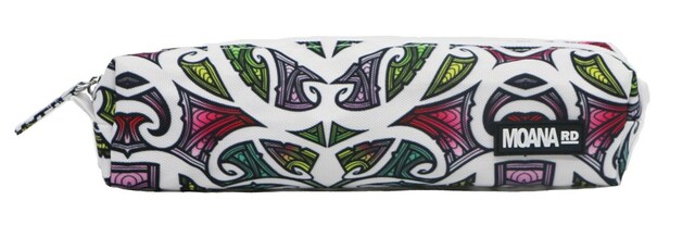 Classic pencil case decorated with artwork by the talented Miriama Grace Smith in collaboration with Moana Road.