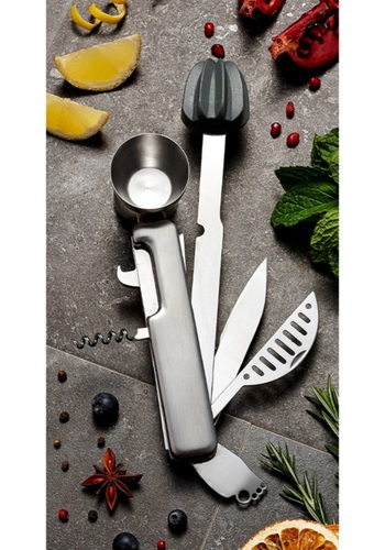 The all in one cocktail multitool has all the tools you need to create gorgeous cocktails and drinks. Just like a Swiss army knife, but actually useful!