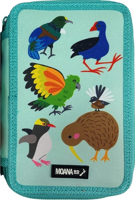 The cover of this case is decorated with New Zealand's favourite birds. Inside there are three zippered compartments.