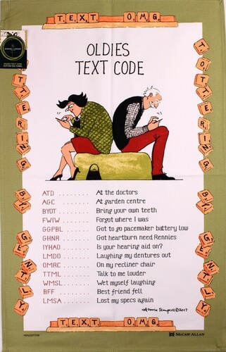 Oldies Text Code Tea Towel