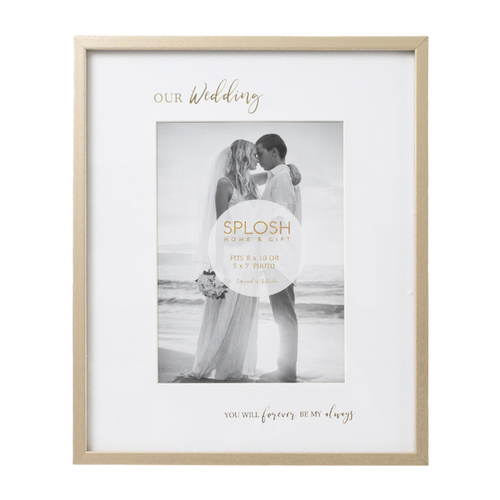 Celebrate that very special day by displaying your favourite wedding photo in this classy photo frame. The frame is finished in a matt metallic gold and on the white surround read the words "Our Wedding. You Will Forever be my always."