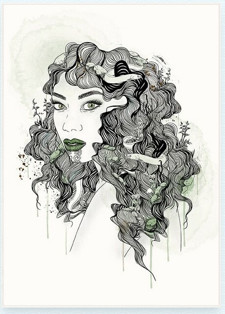 Black and white with highlights of green and brown, this print is my favourite of Sarah Ellen's. The subject is stunning, but it is the subtle details hidden in her hair which really grab my attention.