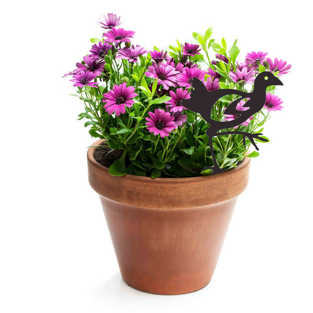 Made in New Zealand from corten steel and powder coated for extra longevity, these funky garden stakes featuring all of our favourite New Zealand birds make a great gift. The naughty pukeko is like a naughty child you just can't help but like...even if it's as you hide your smile behind a disapproving frown. Fill your garden (or pot plants) with pukeko.