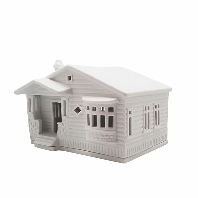 Made from unglazed porcelain - comes with a candle plate and a lift-off house. Simply place a tealight candle or battery tealight candle on the base and place the house back on top.