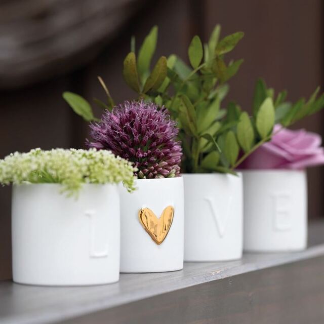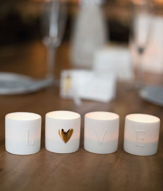 Together the four love lights spread the message of love - in the form of matte porcelain letters spelling out "LOVE" with the 'O' represented by the international symbol of love: a shiny gold heart.