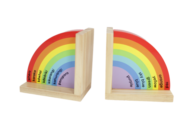 Keep books tidy and add a splash of colour with these cute and colourful rainbow bookends. Made of wood and non-toxic colours, they’re also great way for your little one to learn colours in Te Reo and English