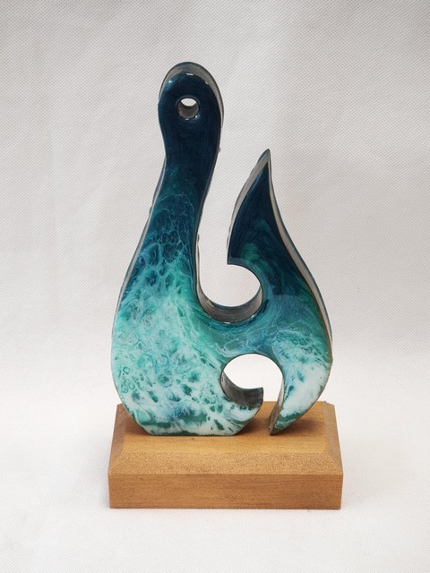 The hook is finished in a clever green (greener than it looks in the photo) and white resin, resembling the waves of the ocean. Each piece is unique, so please allow for some differences to that pictured.