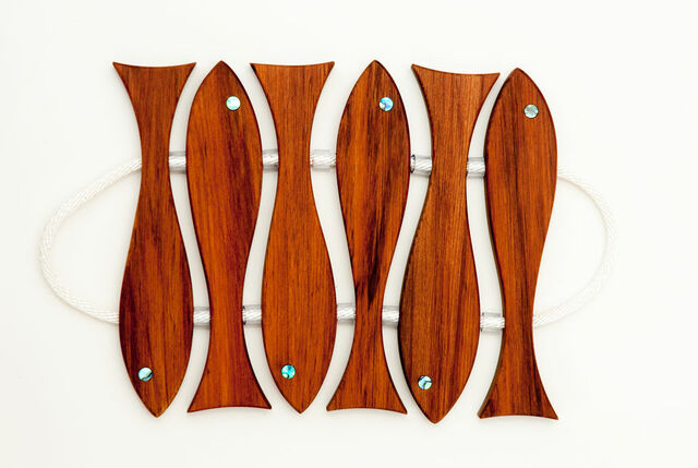 Made in New Zealand from native Rimu timber our fish pot stand is joined with rope and has paua inlaid eyes. It makes a great gift for the fisherman and especially one that likes to cook.