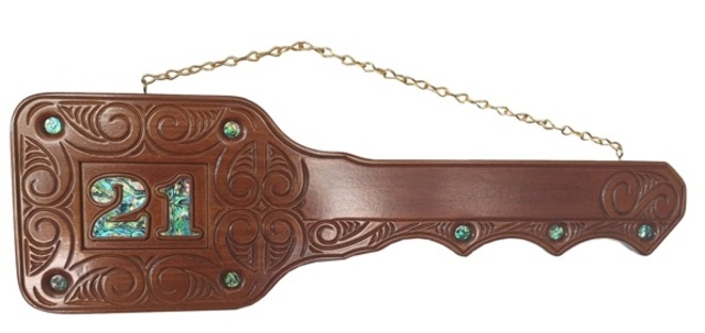 Our 21st key features a Paua 21, it's made from Tulip Wood, sustainably harvested, a very strong hardword ideal for carving.