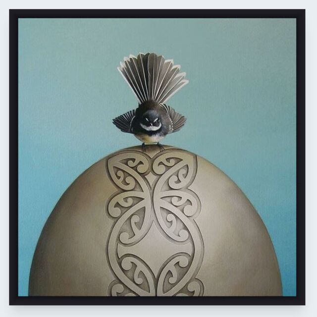 Amplifying the compassion and warmth of these heart-filled creatures, who live in the moment, I verge into portraiture. Placing Tui and Piwakawaka upon pedestals, I admire their wisdom and integrity through stories and legends which have been told. I introduce objects of sentimental value to reflect their importance in an attempt to bring awareness of their fragile existence, an ongoing essence throughout my work."