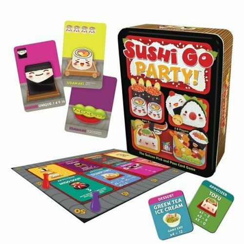 Sushi Go Party!, an expanded version of the best-selling card game Sushi Go!, is a party platter of mega maki, super sashimi, and endless edamame. You still earn points by picking winning sushi combos, but now you can customize each game by choosing à la carte from a menu of more than twenty delectable dishes. What's more, up to eight players can join in on the sushi-feast.