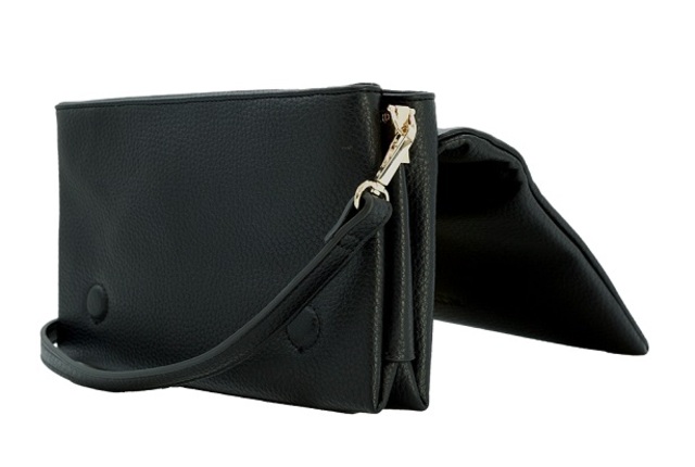 Made from PU leather (pleather) this smart handbag is great as a crossbody option, or a classy clutch. Lift the flap, which is held in place with magnets, and you'll find two generous zipped compartments. One compartment has another small zippered pocket and the other has two small open pockets. The adjustable shoulder strap is removable.