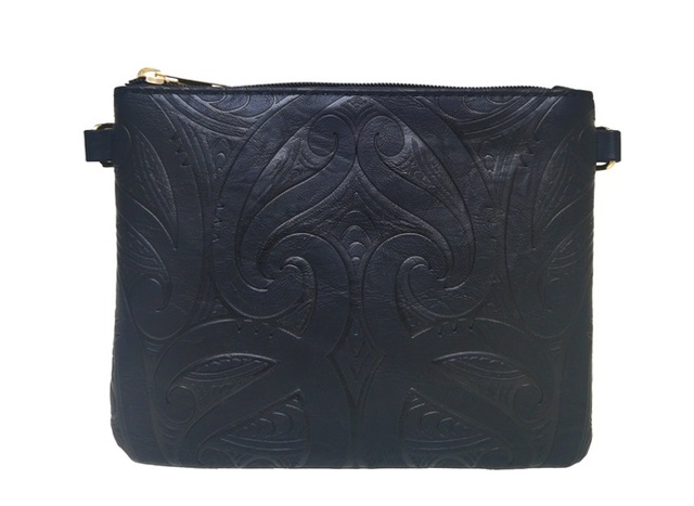 Moana Road's classic go-anywhere purse, the Viaduct, has had a Miriama Grace-Smith makeover. It still has the same 'Viaduct' features, including handy detachable wrist strap and shoulder strap, gold zip and smaller internal zipped pocket. Miriama's trademark Māori design adorns both sides of this great little bag.