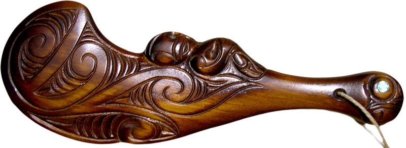 Proudly hand carved here in New Zealand using traditional techniques. Made from sustainable tulipwood and Paua Shell.