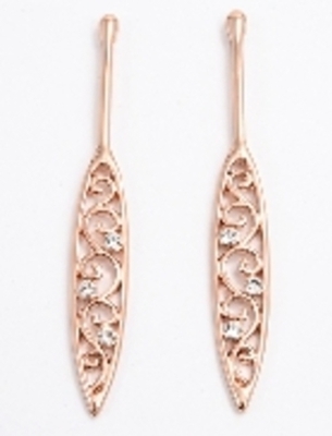 Rose gold plated rhodium earrings with 3 rhinestones on each paddle.