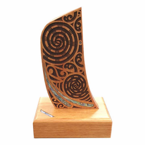 Our Waka Stern Post sits on a matching timber base that can be engraved.